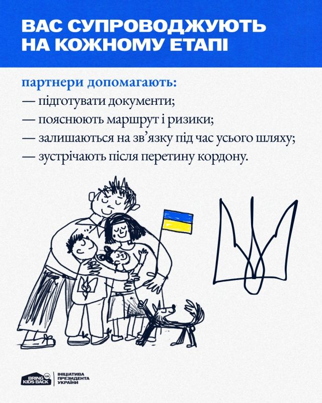 Якщо ви тільки плануєте виїзд — звертайтеся. У межах ініціативи Bring Kids Back UA допомагають виїхати безкоштовно, конфіденційно та з повним супроводом — навіть якщо немає документів. Для кожного підбирають безпечний маршрут.