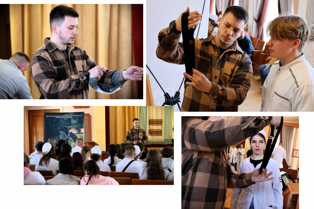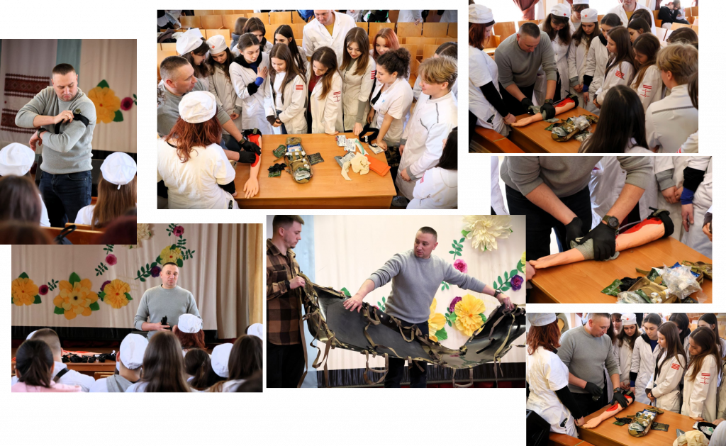 Здобувачі відпрацьовували критично важливі навички: зупинку масивних кровотеч, накладання турнікетів, алгоритми дій у перші хвилини після травми та роботу з пораненими.